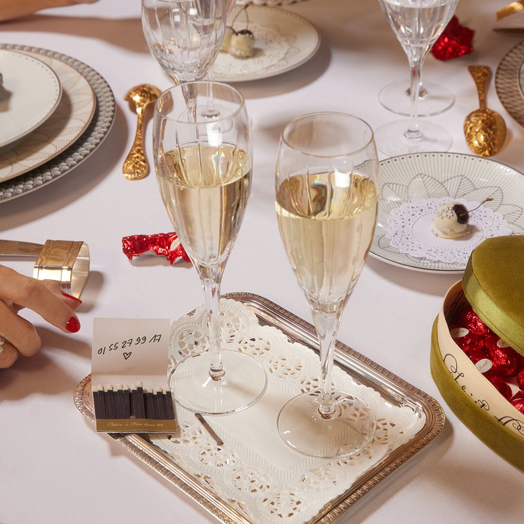 The pair of crystal champagne flutes from the Iriana collection. With their refined silhouette and exquisite clarity, these flutes are designed to elevate every toast. Perfectly balancing timeless elegance and functionality, they embody Christofle’s artistry — an essential for celebrating life’s most memorable moments.
